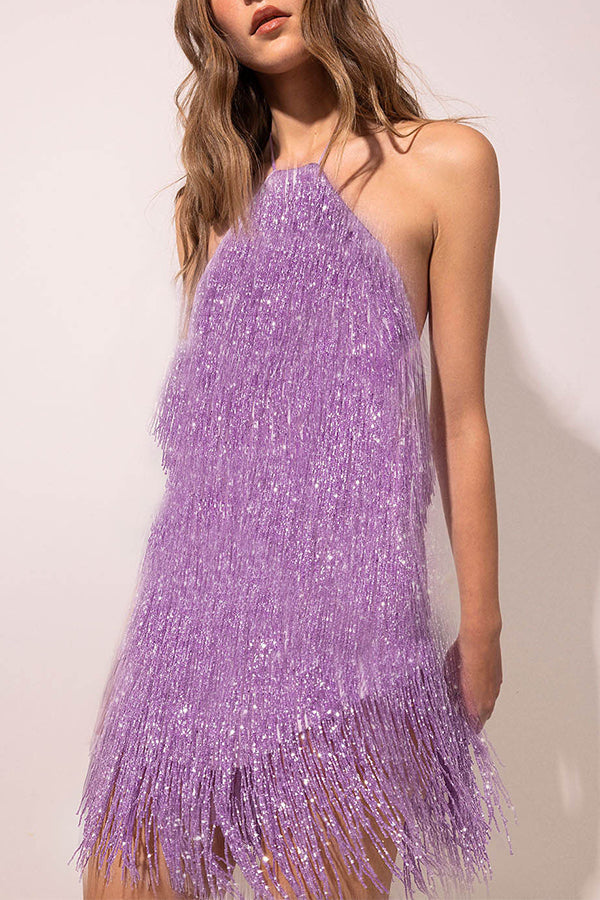 Sleeveless suspender tassel dress midi skirt